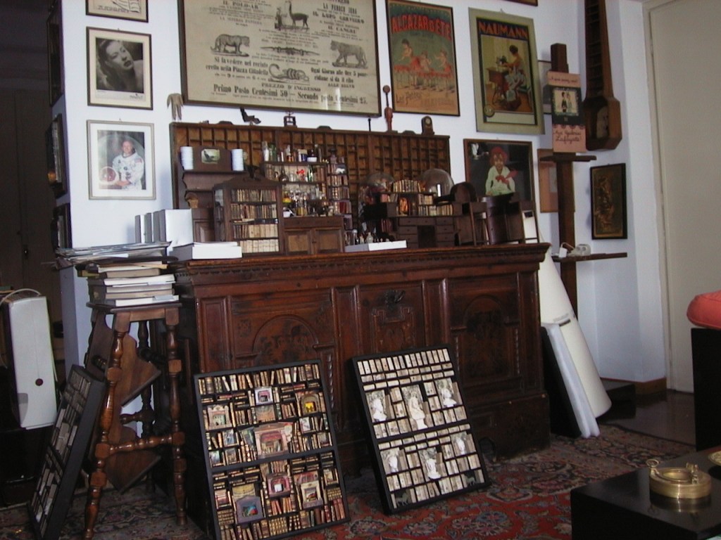 Un’esposizione permanente a Londra e fra i fortunati possessori, teste coronate, presidenti, celebrità mondiali. Gli inizi di un’avventura iniziata negli anni ’80 e non più interrotta sono, come spesso succede, casuali: verso la fine degli Anni Settanta s’imbatte nei cassetti Bodoni; sono di legno, neri, divisi in tanti piccoli scomparti per contenere, separando le singole lettere e gli spazi, i caratteri mobili; erano in uso quando i tipografi componevano a mano i testi da stampare. “Ne possedevo uno, lo misi verticale e lo riempii di libri minuscoli realizzati appositamente insieme ad alcune bottiglie in miniatura. Lo feci vedere ai miei amici Vallora di Torino. Lei aveva, in via Cavour angolo via della Rocca, “La bottega del borgo Nuovo”, un negozio di piccolo antiquariato. Ho messo insieme una decina di piccole biblioteche. Successo: ne ho esposte dieci e vendute quindici. Da allora non ho più smesso di farne, mi sto avvicinando a quota mille”