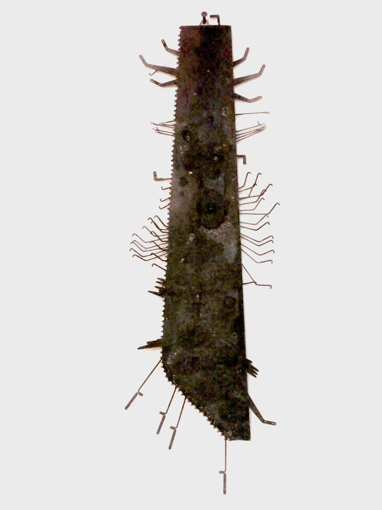 Bassorilievo tecnica mista metallo su legno. Misure 96×36.